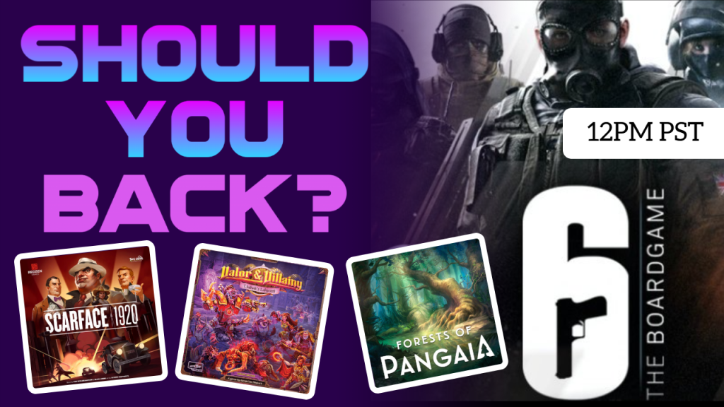 Join crowdfunding experts Gloryhoundd and DrGloryhogg as they investigate and determine if they should back 6: Siege – The Board Game, Scarface 1920, Valor & Villainy Lludwik’s Labyrinth or Forests of Pangaia